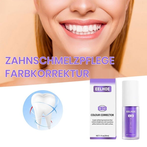 Kariesprävention: Nach umfangreicher Forschung haben wir den perfekten tiefvioletten Farbton gefunden, der gelbe Verfärbungen neutralisiert.
