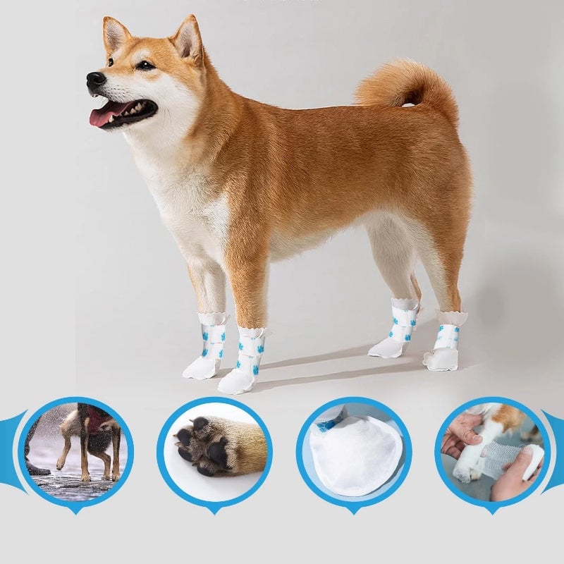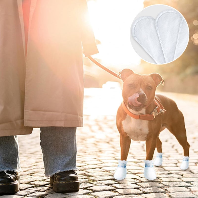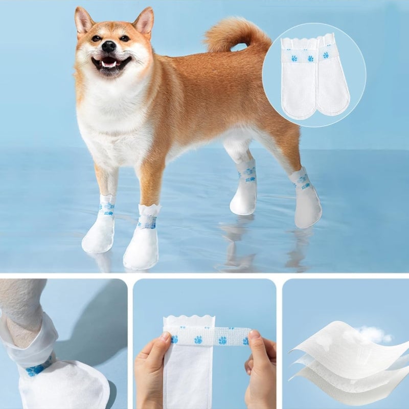 MATERIAL: Unsere Einweg-Hundepfoten-Schutzschuhe bestehen aus weichem Vliesstoff und das Innere ist wasserdicht beschichtet, leicht und atmungsaktiv. Im Vergleich zu herkömmlichen harten und schweren Hundeschuhen verletzen Einweg-Hundesocken die Pfoten nicht und lassen die Haustiere sich unbeschwert fühlen.