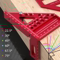 📐 Alles-in-Einem Multi-Winkel Messwerkzeug: Markiere präzise Winkel von 0° bis 90°, mit integrierten Führungen für gängige Winkel: 22,5°, 30°, 45°, 60°, 67,5° und 75°. Perfekt für Gehrungsschnitte, Rahmenbau und Winkelübertragungen.