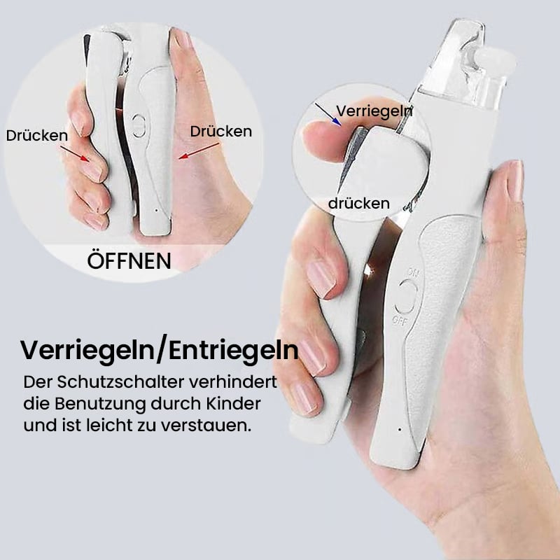 𝐋𝐄𝐃 Licht: Das LED-Licht beleuchtet die Blutlinie in Nägeln und Krallen für ein einfacheres und sichereres Trimmen. Hinweis: Bei dunklen oder schwarzen Nägeln kann das LED-Licht weniger effektiv sein.