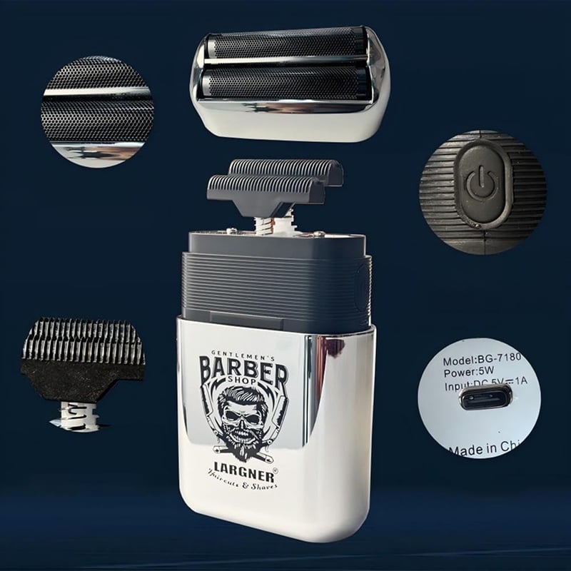 - Doppel-Gegenschneidensystem: Gegensätzlich bewegte Klingen sorgen für eine gründlichere, glattere Rasur mit weniger Zügen.
